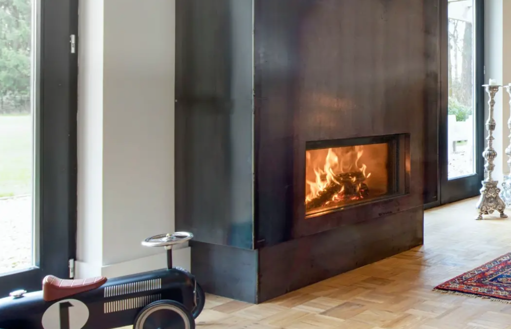 Deze compacte houthaard is ideaal voor inbouw in een kastenwand of schouw, met alleen glas aan de voorzijde voor een moderne uitstraling.