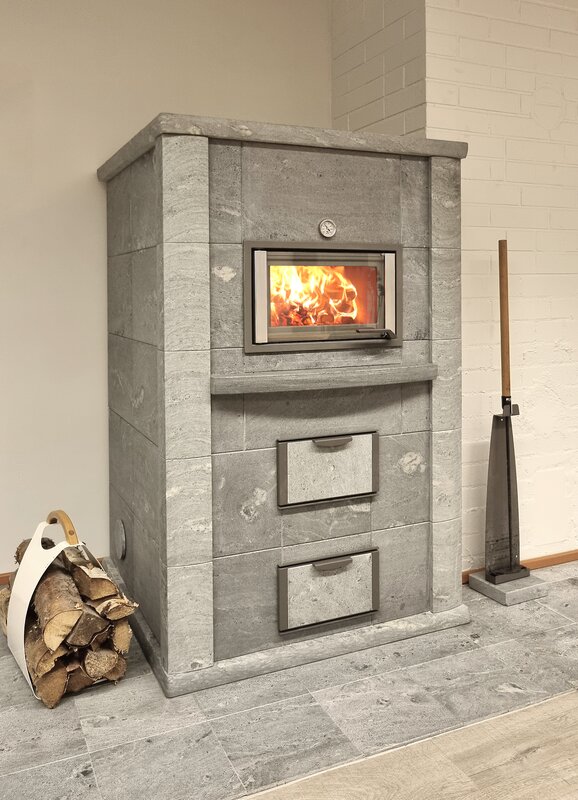 De bakoven bestaat volledig uit speksteen waardoor er een nagenoeg gelijke temperatuur overal in de oven ontstaat.