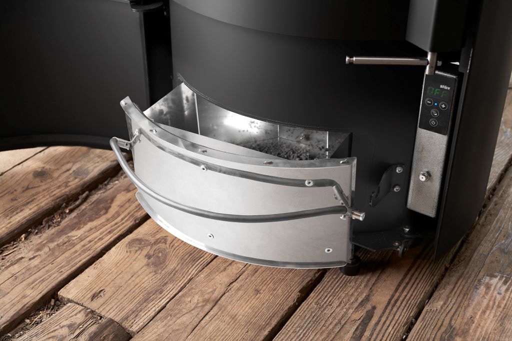 Ook het vermelden waard: het laadluik dat zich aan de voorkant bevindt, om op borsthoogte bij te vullen, en het asverwijderingssysteem; de aslade, met grote capaciteit, hoeft slechts om de 170 bedrijfsuren geleegd te worden.