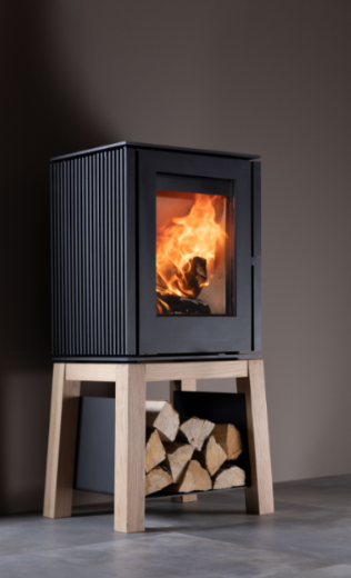 De geribbelde zijkant van de kachel geeft een stoere en degelijke uitstraling, terwijl de eikenhouten voet een natuurlijk detail toevoegt aan het ontwerp. Dankzij de mogelijkheid om de kachel aan te sluiten op het rookkanaal aan zowel de boven- als achterzijde, biedt de Woody Loft ook nog eens flexibiliteit bij de installatie.