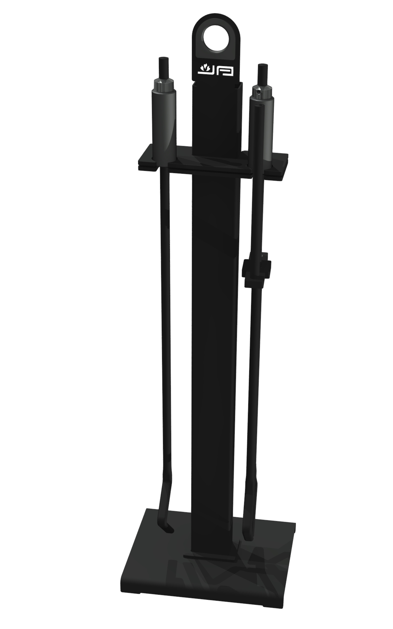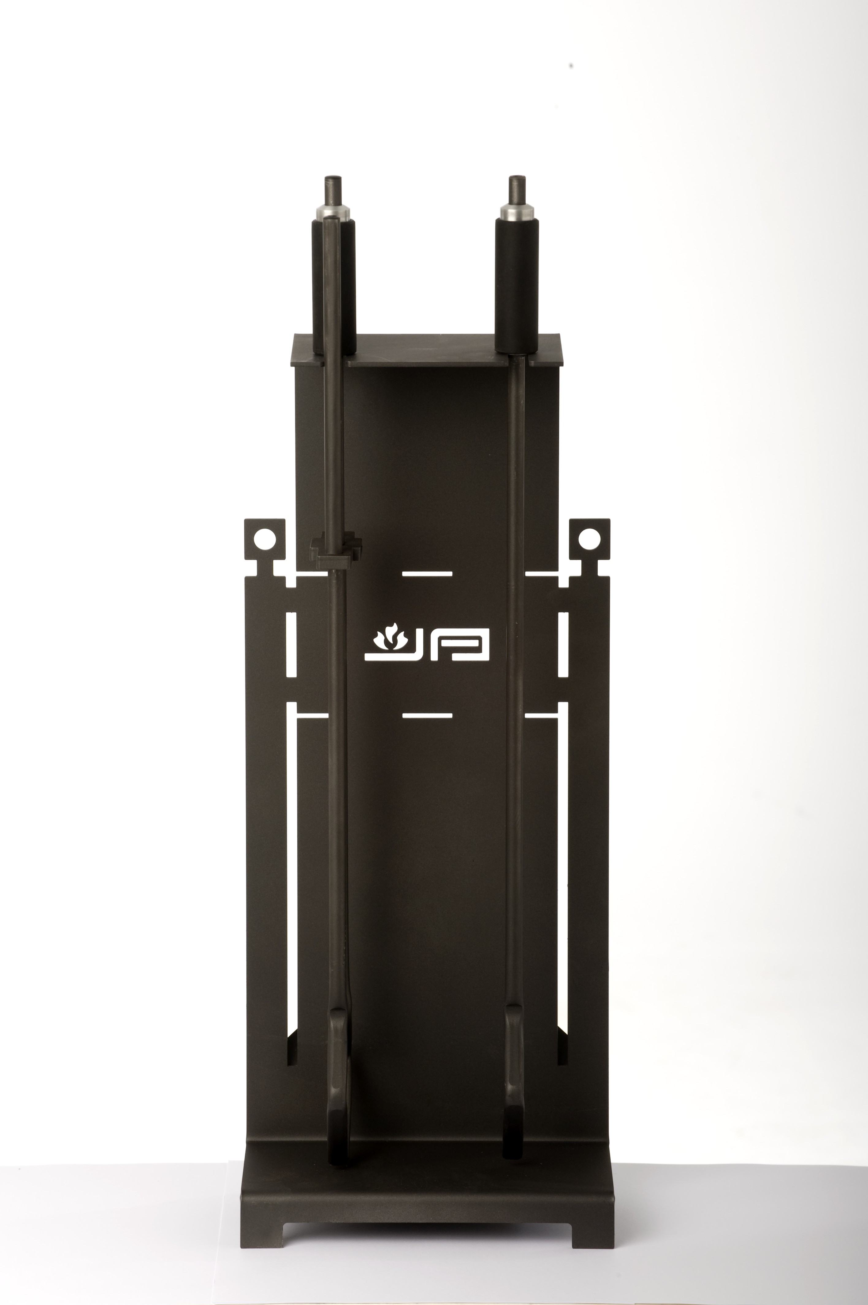 Het nieuwste model haardstel van Janco de Jong bestaat uit een tang en een pook/blaaspijp. Deze hangen in een eenvoudige staander.