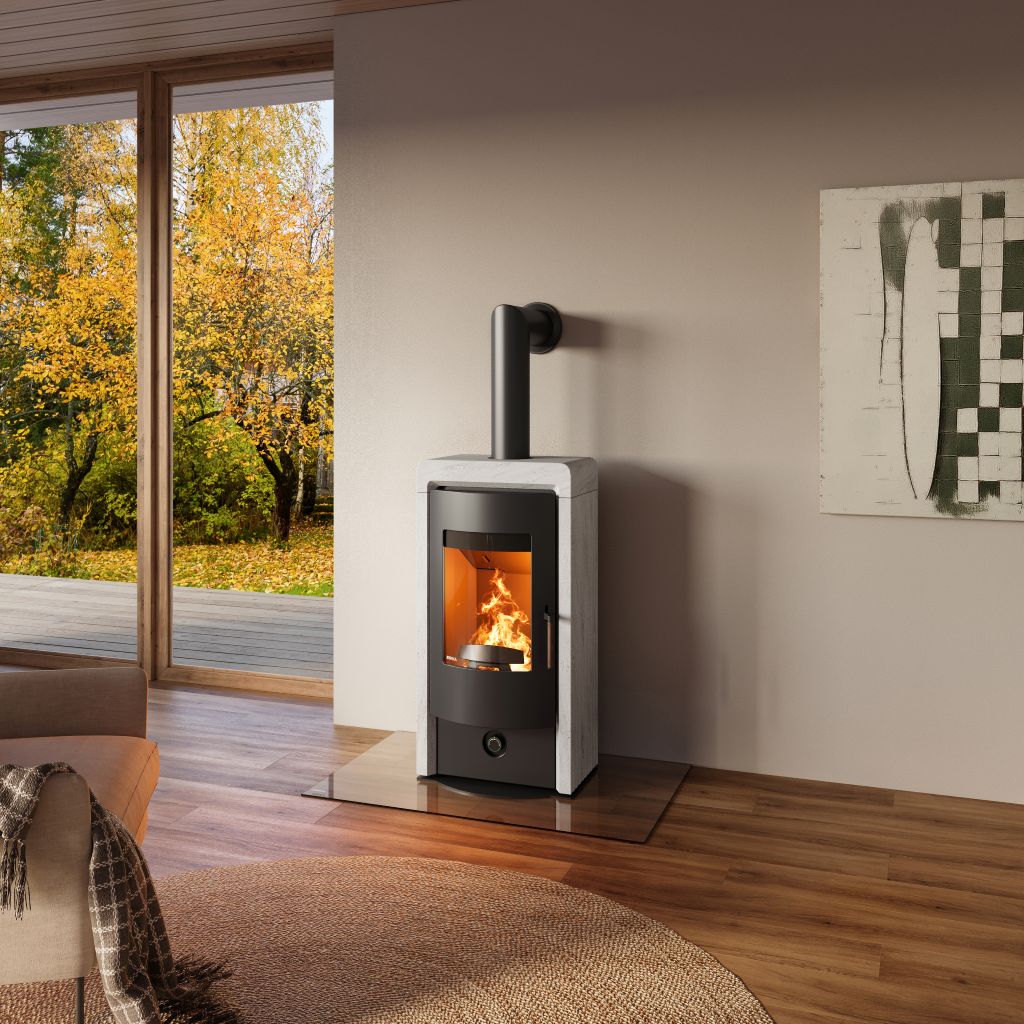 Qua design past de MOKA moeiteloos in zowel moderne als klassieke interieurs. Je kunt namelijk kiezen uit zijpanelen van zwart staal, hout of steengrijs. Zo maak je van de kachel niet alleen een functioneel toestel, maar ook een stijlvol meubelstuk dat echt bij je woning past.