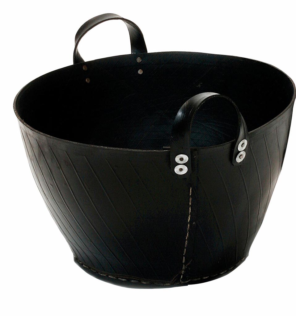 Deze unieke houtmanden komen uit Frankrijk. Ze zijn gemaakt van gerecyclede autobanden en zijn voorzien van een stevig stiksel.