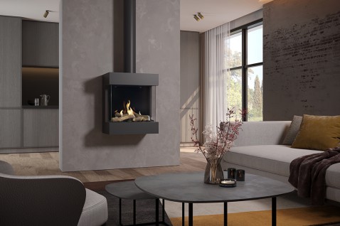 Moderne 3-zijdige haard uit de vernieuwde METRO 100XT lijn. Voorzien van Eco Wave, behoud van een prachtig hoog vlammenbeeld met minder vermogen.