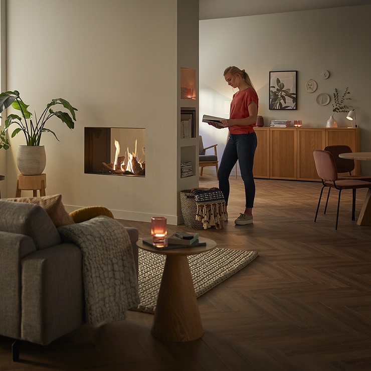 Het is een sfeervolle mogelijkheid waarbij de situatie toch ruimtelijk blijft. Daarbij heb je aangename warmte en van alle hoeken zicht op de spelende gloed van het vuur.
