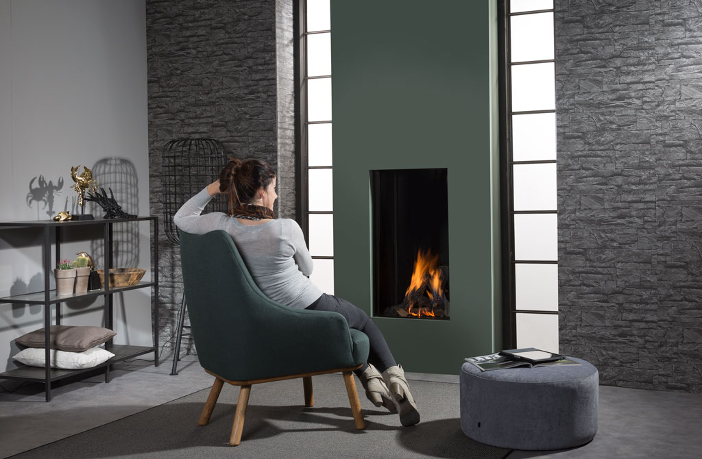 Deze haard kan zeer minimalistisch worden ingebouwd, en neemt door zijn slanke vorm weinig ruimte in beslag.