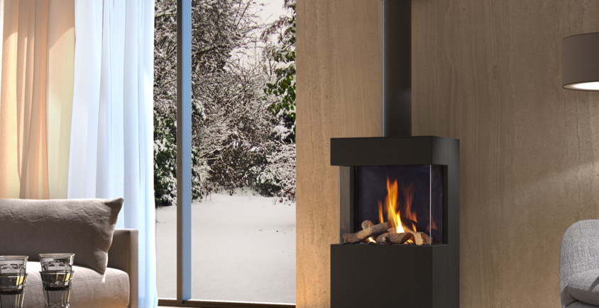 De gasgestookte openhaard 01A is een vrijstaande openhaard op gas.
