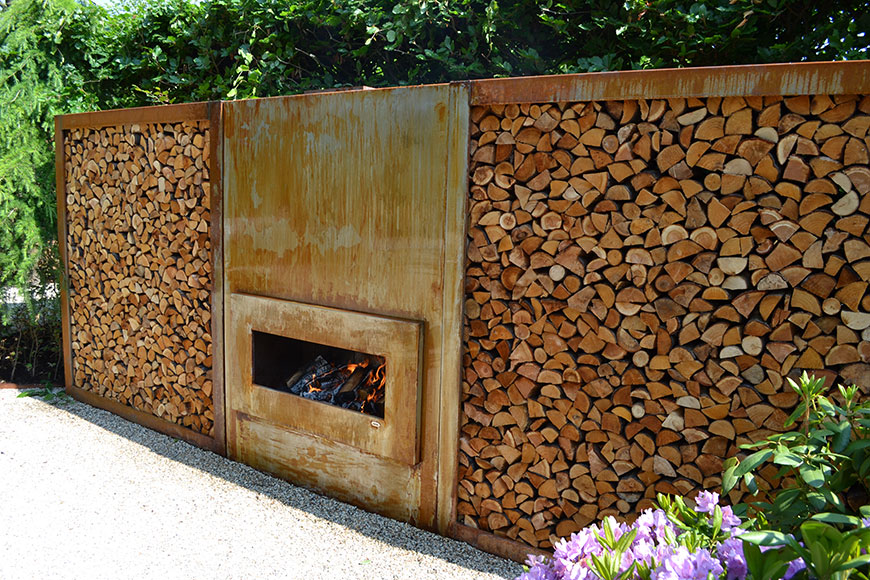 Uiteraard is de Garden Divider ook te gebruiken als houtopslag. Uit de praktijk blijkt vaak dat ieder zo zijn wensen heeft mbt de maatvoering. Ook wat betreft de diepte van de houtopslag. Of welke uitstraling moet er overblijven als de houtvoorraad slinkt? Allemaal vraagstukken die we wel eens aan de hand hebben gehad en voor u kunnen oplossen.