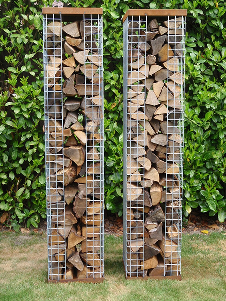 De Zeno Nets houtopslag is vervaardigd van Cortenstaal en gegalvaniseerde netten speciaal gemaakt voor schanskorven.