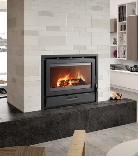 Voor de liefhebbers van de open haard ontwikkelde FLAM voor Largo+ een nieuwe liftdeur. Het glas van de Largo+ kan volledig omhoog worden geschoven, waardoor er volledig onbelemmerd zicht is op het vuur en het vlammenspel te horen is. Zowel bij de openhaardfunctie als bij gesloten deur rendeert de Largo+ met verschillende brandstoffen. Naast de traditionele kolen, bruinkoolbriketten of industrieel antraciet, kunnen er ook allerlei vormen van alternatieve biomassa worden gebruikt.