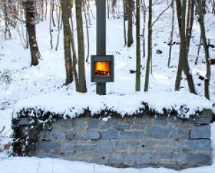 De haard wordt gelijk met de grond of op een sokkel geplaatst.