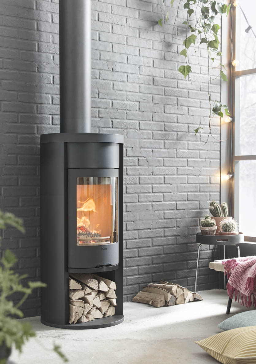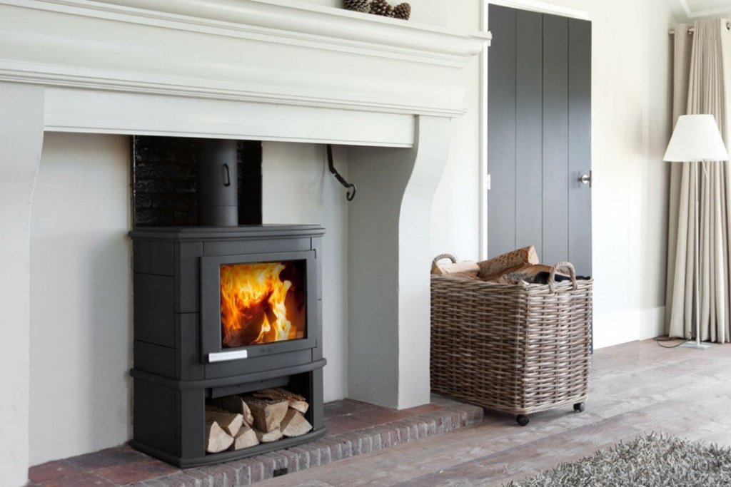 De Morsø 7343 is leverbaar in een uitvoering met een open sokkel waar het hout in opgeborgen kan worden.
