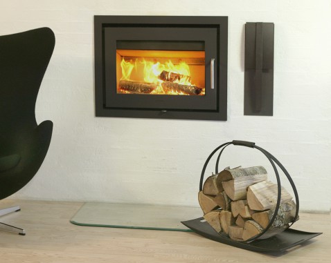 Een strak vormgegeven houtkachel van Dik Geurts, in twee varianten verkrijgbaar. De Vidar Large en de Vidar Wall.