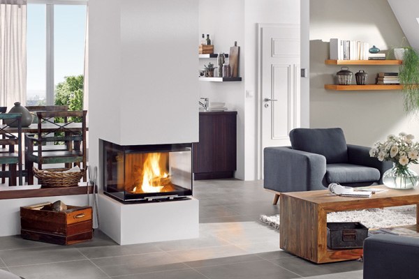 Met de panoramische beglazing van de deur (voorzijde) en de zijkanten kunt u vanaf drie zijden het vuur bekijken