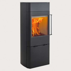 De Orion is een traditionele kachel met schone verbranding en een goede warmtestraling. De details in geborsteld staal, het kenmerkende handvat.