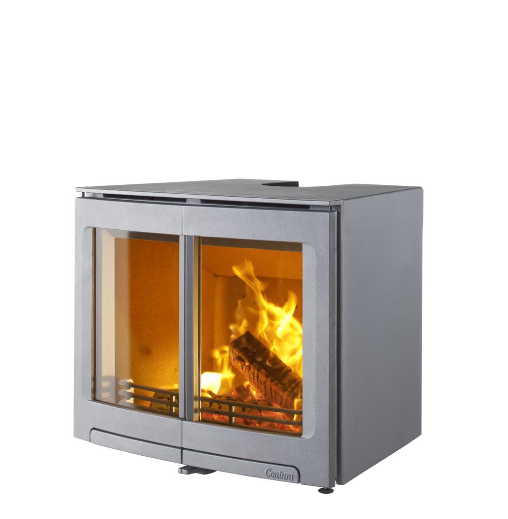 Maak het mooi in huis! De Contura i5 met dubbele deur past ook uitstekend in hoekhaarden, waar een grotere deur te veel ruimte zou innemen. Met een lamellenrooster wordt de moderne uitstraling versterkt.