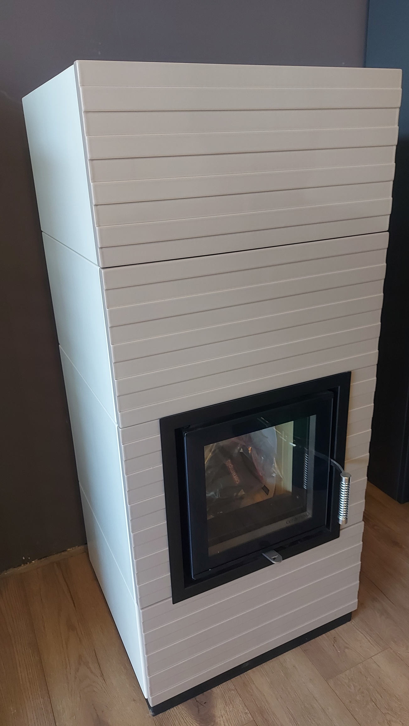 Handgemaakte combi kachel waarmee je eenvoudig kunt overschakelen van hout naar pellets. U steekt het houtvuur aan met de hand en u kunt daarna de ingebouwde pelletmodule aan zetten.