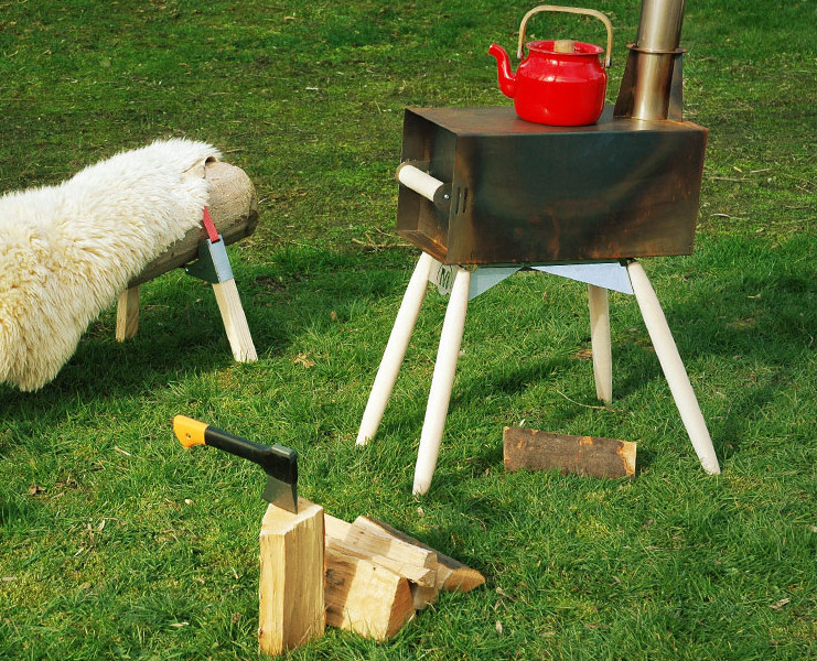 Deze houtkachel, Hotdog, is een warme metgezel voor tuin of balkon.