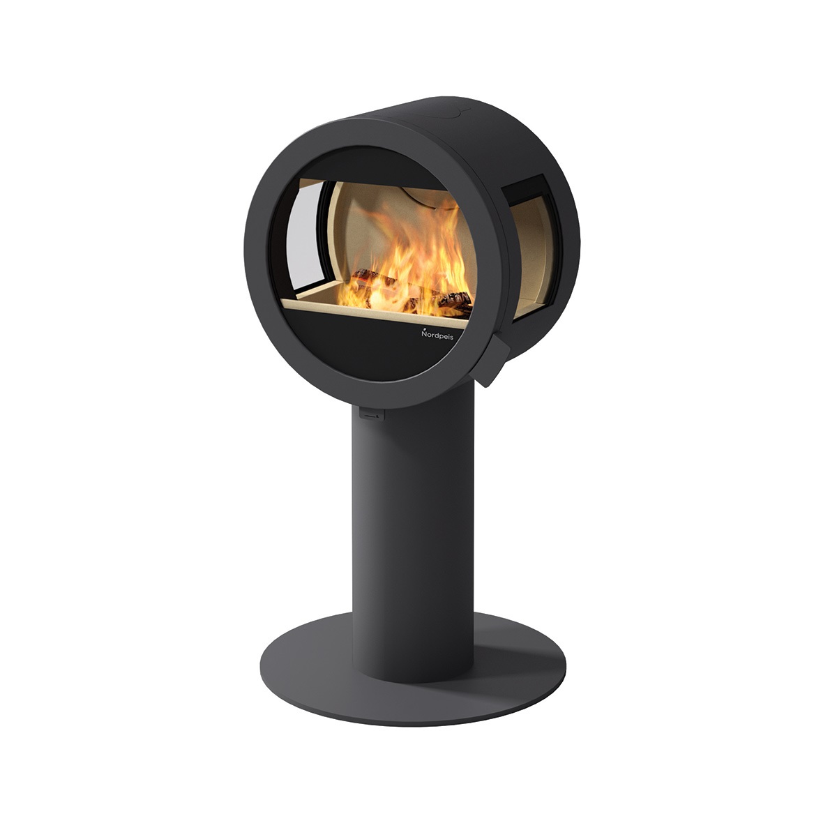 De Nordpeis ME op voet is een klassieke kachel, met één modern, mooi rond ontwerp.
