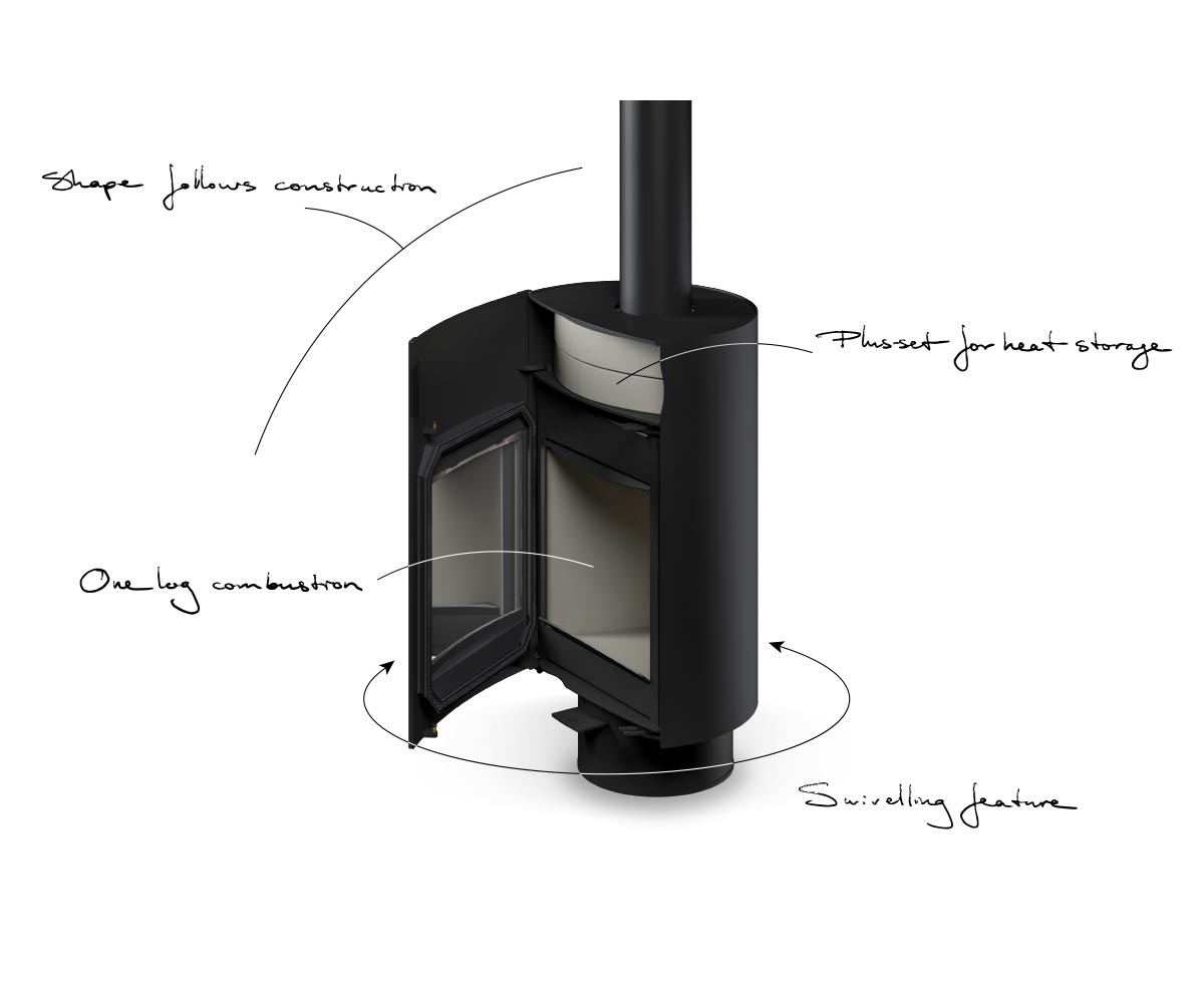De Sorenne vertegenwoordigt de opsomming van enkele decennia kachels bouwen. In het ontwerp herken je de lijnen van de HL1 uit 1979.
