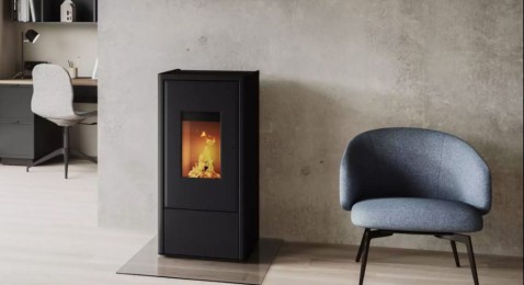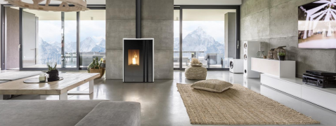 Elegant en geraffineerd, zonder de traditionele zichtbare luchtroosters: de pelletkachel Botero 2 omvat alle geavanceerde technologie van Jolly Mec.
