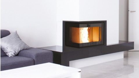 Deze pelletkachel heeft van twee kanten panoramisch zicht op het vuur