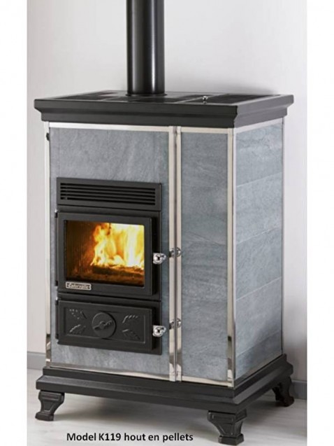 Dit is een kachel met 2 toestellen in één: Een houtkachel gedeelte en een pelletkachel gedeelte.
