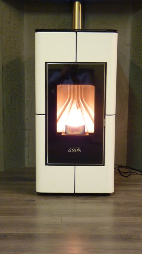 Prachtige ronde pelletkachel met zeer hoog rendement.