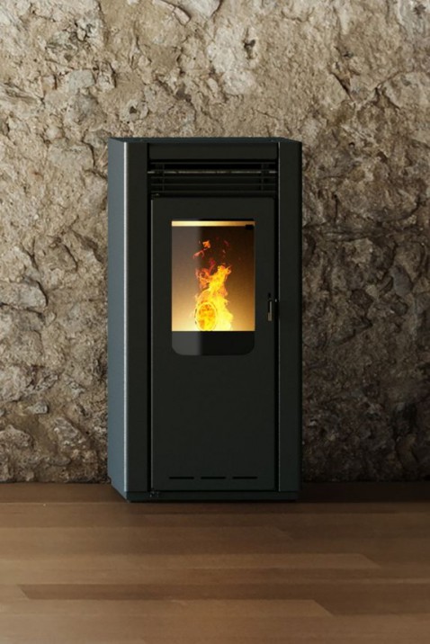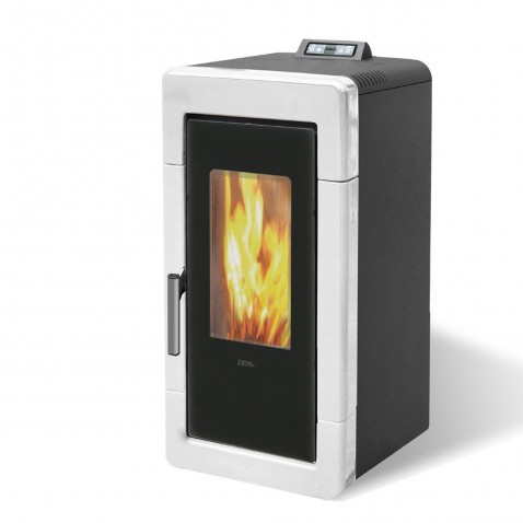 De Jolly Mec Botero is een chique pelletkachel die geheel uit aluminium is opgebouwd.