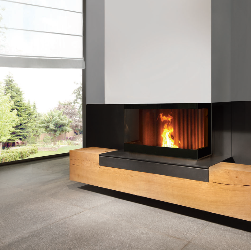 Deze 3-zijdige pellethaard levert een vermogen van ruim 15 kW en heeft een hoog rendement van 93.7%.