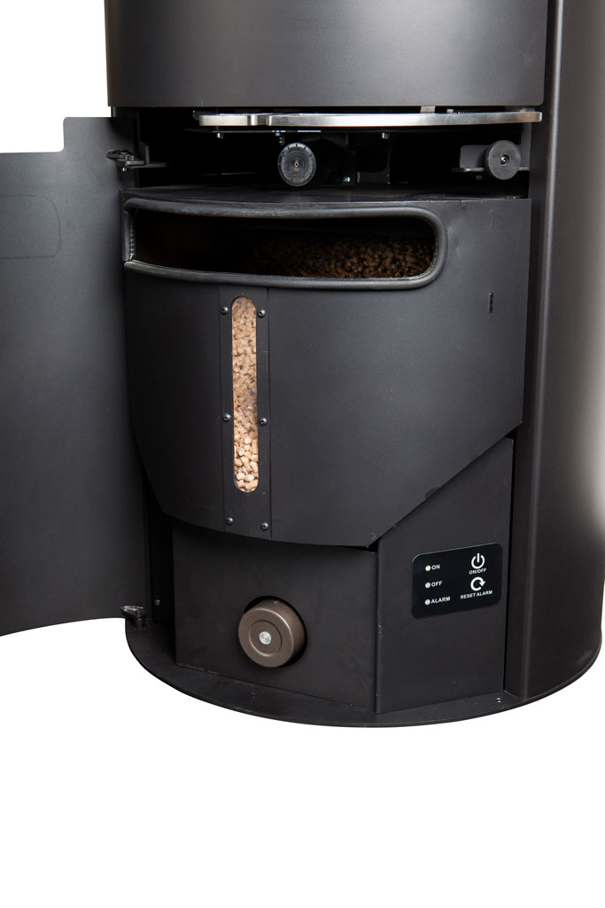 - Een eenvoudige en snelle toevoer van pellets dankzij het trechtervormig reservoir