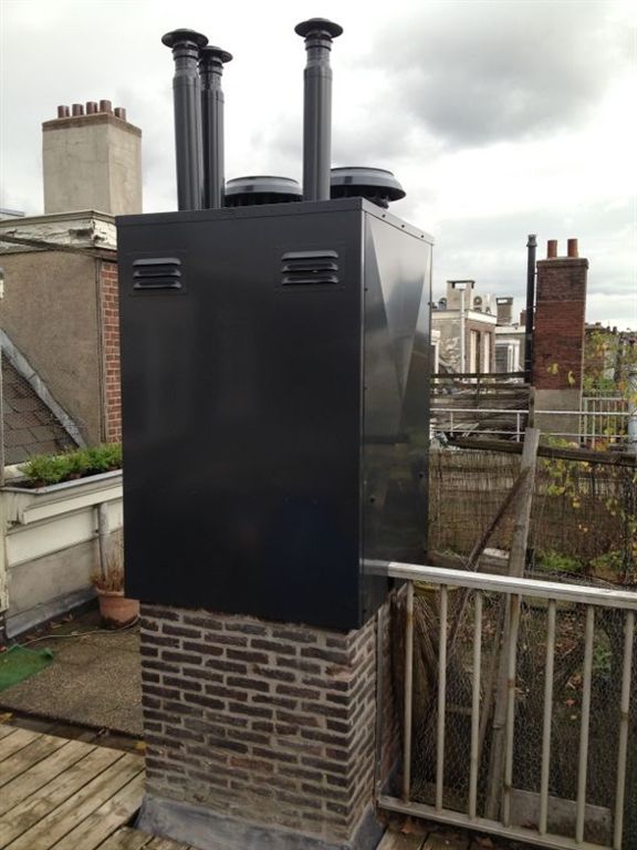 Is de schoorsteen buitendaks in slechte staat en moet deze worden gerenoveerd dan is het plaatsen van een overzet-schoorsteenkap een prima oplossing.