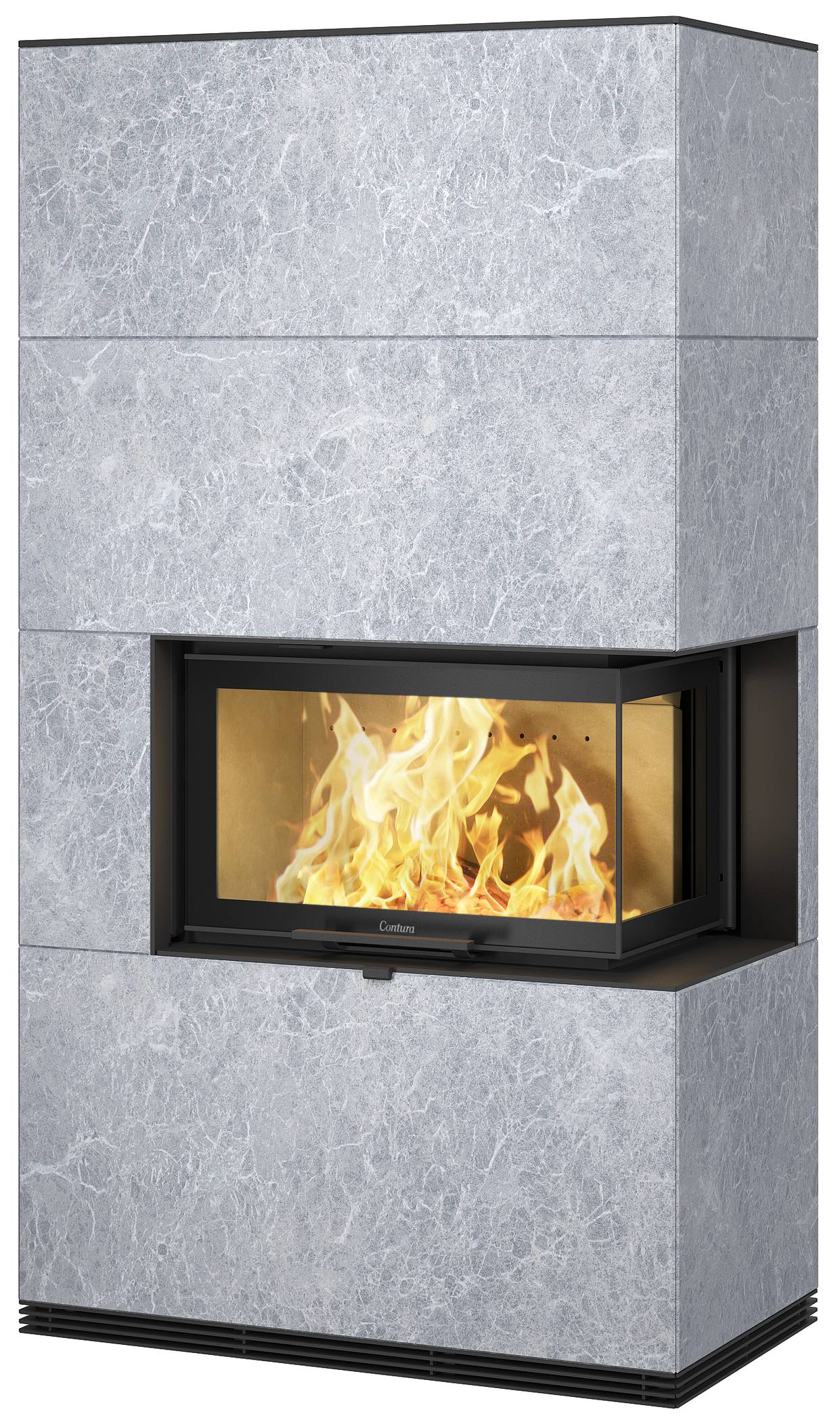 De Contura i41 is met een deur in de hoek verkrijgbaar zowel links als rechts en in diverse varianten: artstone, speksteen en zandsteen. Bij alle modellen kunt u er 200 kg powerstone bij nemen voor extra lange warmte opslag. Zelfs als het vuur gedoofd is, geeft de kachel dan nog uren lang warmte af. Alle modellen worden geleverd met een gemonteerde ergonomische handgreep, die eenvoudig kan worden vervangen door een tevens meegeleverde discrete handgreep. De patronen en kleuren van het natuursteen variëren.