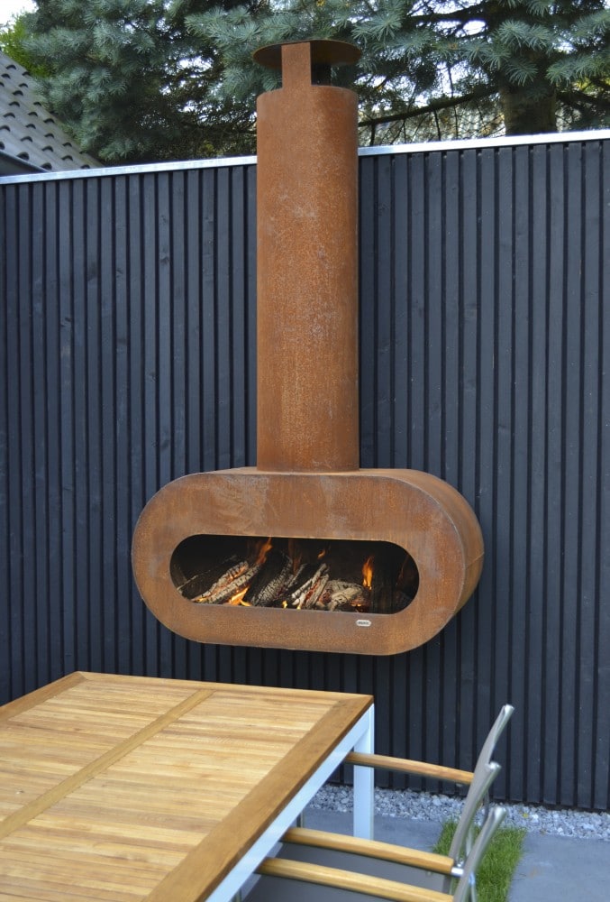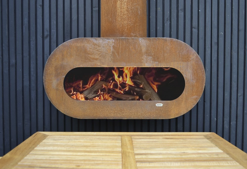 De Zeno Barro Libero buitenhaard is een tuinhaard met een extra brede vuurmond van bijna een meter.