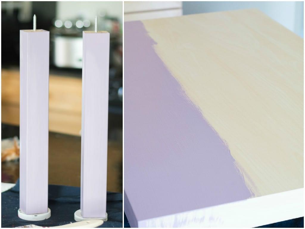 Op dit moment heb je zeven onderdelen over. Zes tafelpoten en de bovenkant van de salontafel. Wil je het geheel een leuk kleurtje geven? Dan kun je dat nu het best doen. Brittany koos voor een mat paarse kleur, wat superleuk staat bij het touw!