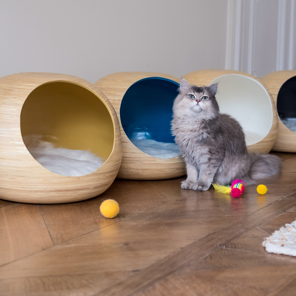 Gemaakt van bamboe en met zijn gestroomlijnde vorm en natuurlijke kleuren past deze kattenmand harmonieus in ieder interieur. De Dandy Ball is een heerlijk beschermd plekje voor je kat om even lekker uitgebreid een dutje te doen.
