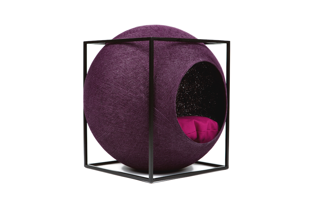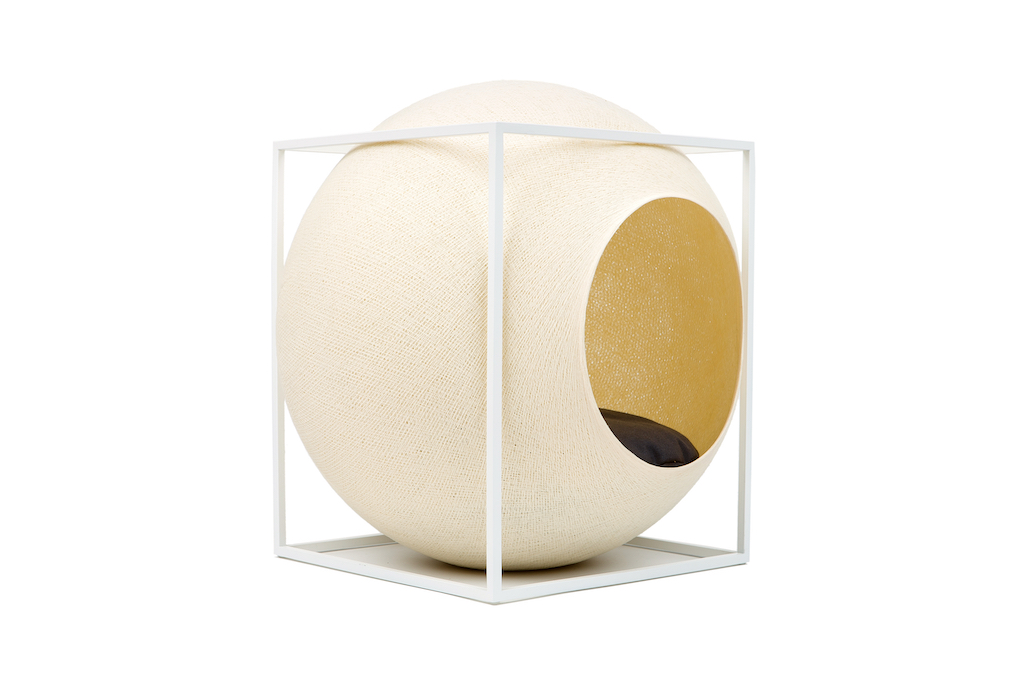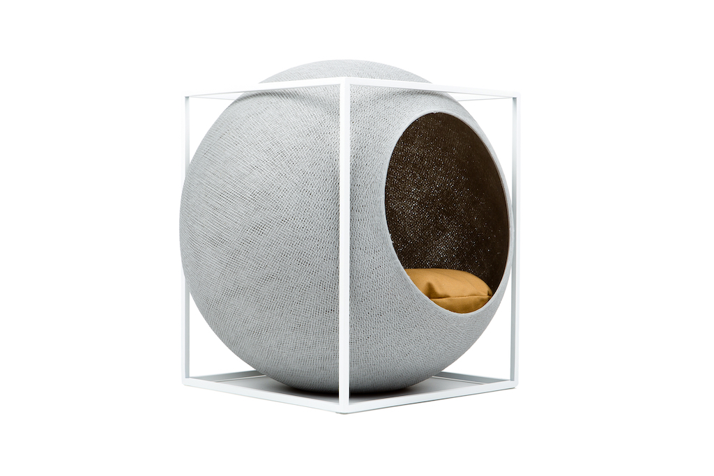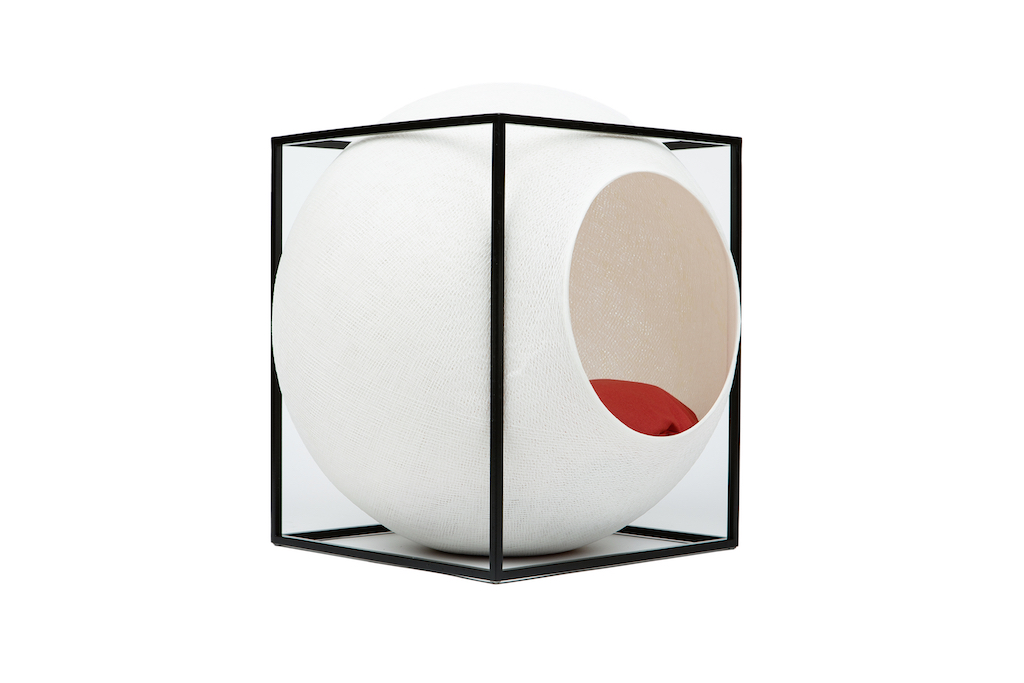 Deze design kattenmand Meyou Paris Le Cube bestaat uit een stijlvolle kubus van metaal of beukenhout met een ronde cocon.