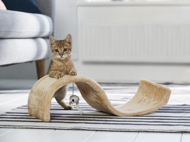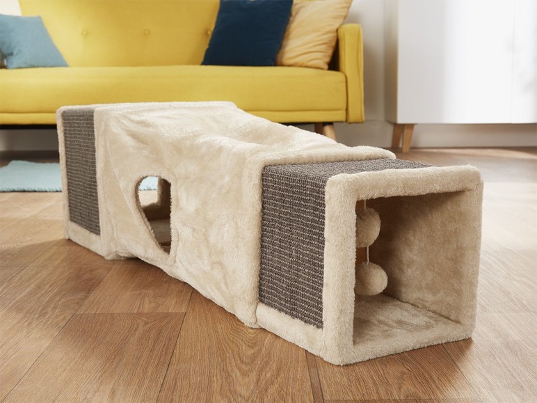 Deze superleuke kattentunnel kunnen heeft naar liefst vier ingangen en dat zorgt ervoor dat ze heerlijk verstoppertje kunnen spelen. En je kunt hem ook samenvouwen, zodat het verandert in een ruimtebesparend verstopholletje. Binnenin hangen twee speelballetjes en aan de buitenkant is hij voor een deel met sisal bekleed: heerlijk om hun nageltjes aan te scherpen.