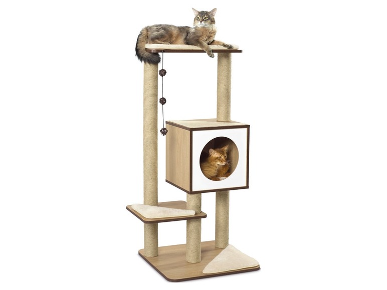 Een feest voor je katten, dat is deze XL krabboom! Ze kunnen zich verstoppen in het holletje, lekker slapen op de twee zachte planken, spelen met de balletjes en heerlijk krabben aan de drie sisal krabpalen. Maar ook voor het baasje geen straf, want deze krabpaal met strakke houtlook misstaat helemaal niet in je woonkamer.