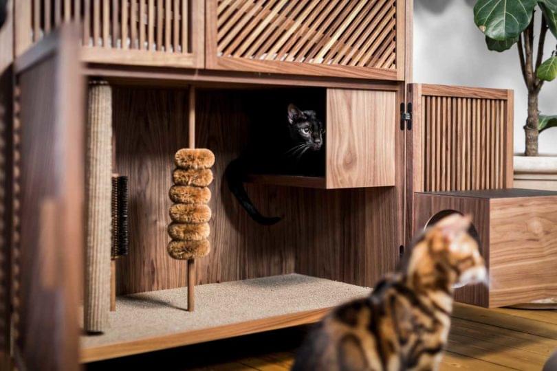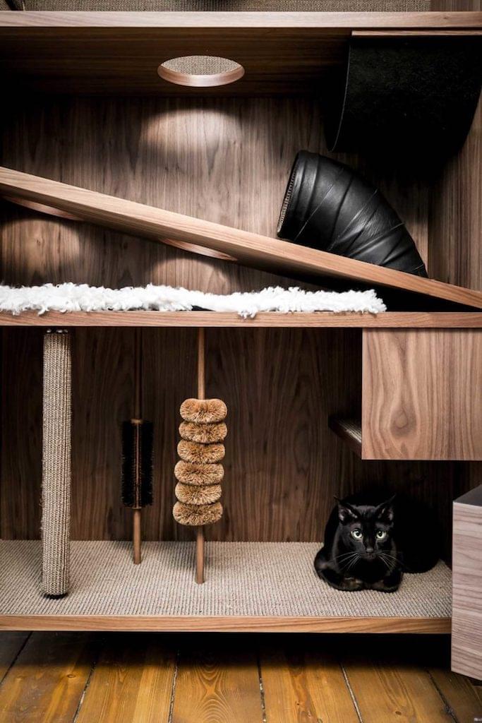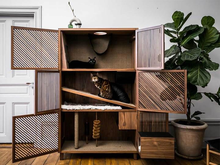 Deze prachtige kast is speciaal ontworpen door een Zweedse kattenpsycholoog en heeft alles wat jouw kat nodig heeft.