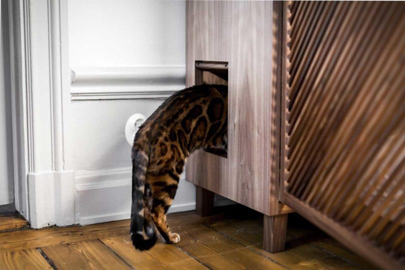 Een kast die van de buitenkant lijkt op een prachtige houten kast. Maar die aan de binnenkant een waar kattenparadijs is. Keurig verstopt achter de mooie notenhouten deuren. En wat katten ervan vinden? Dat zie je hieronder!