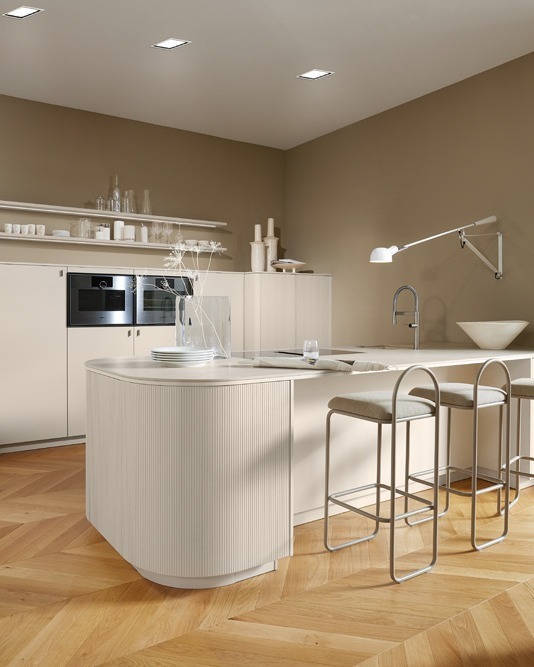 Ontdek hoe natuurlijke materialen, ronde vormen en subtiele kleuren jouw keuken transformeren tot een gezellige leefruimte