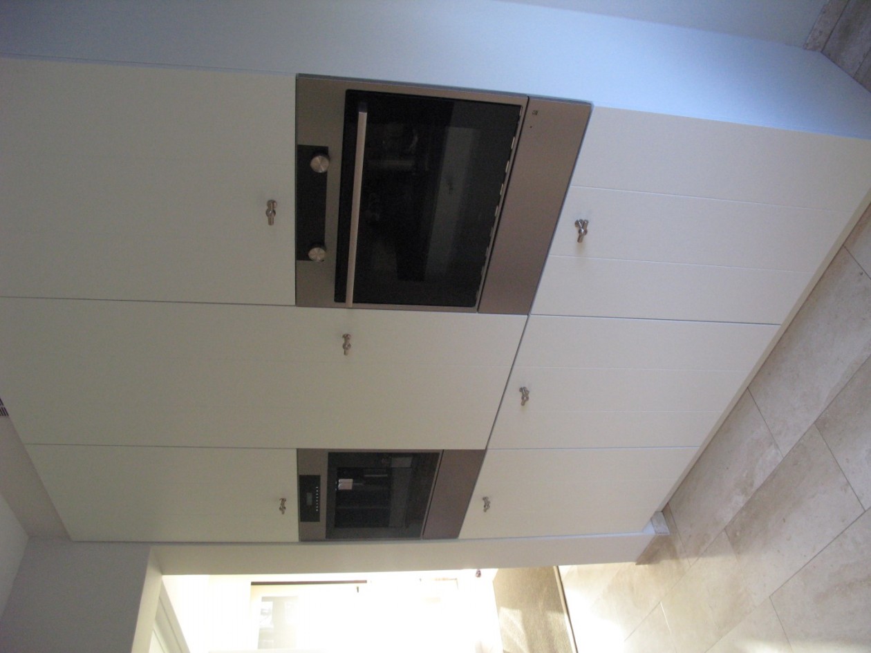 Een prachtige mat witte keuken. Deze keuken is greeploos uitgevoerd.