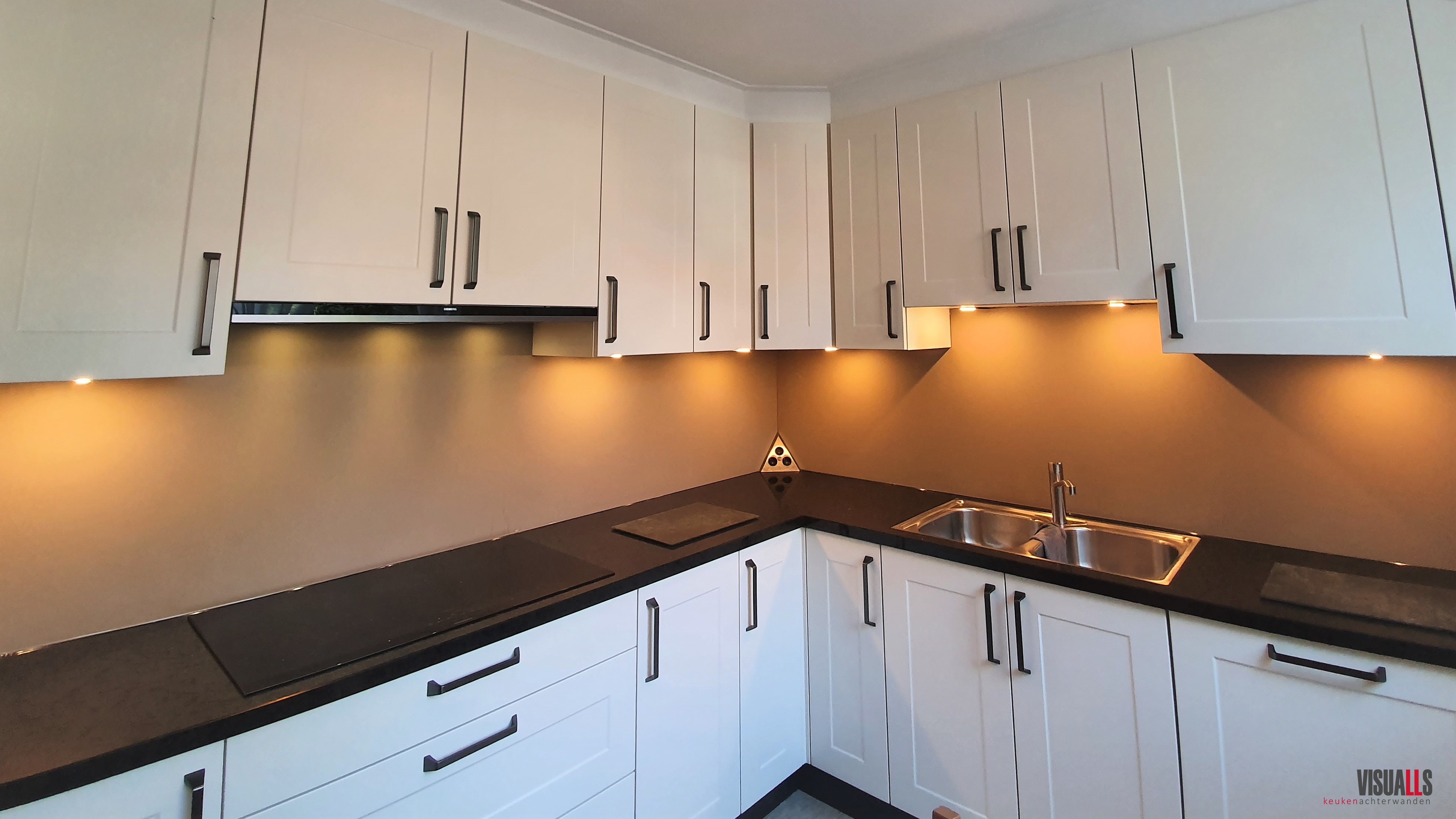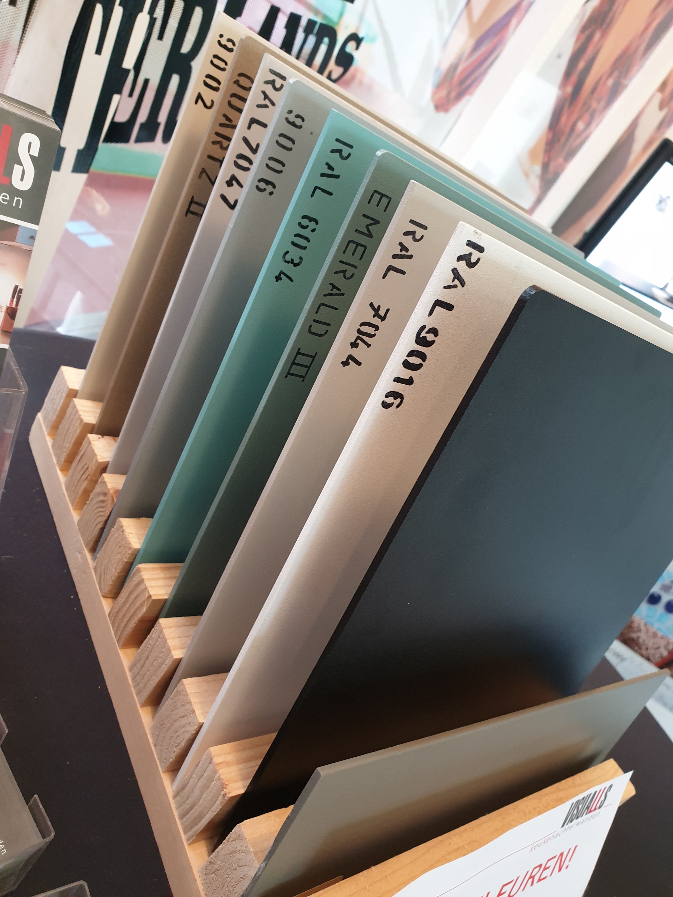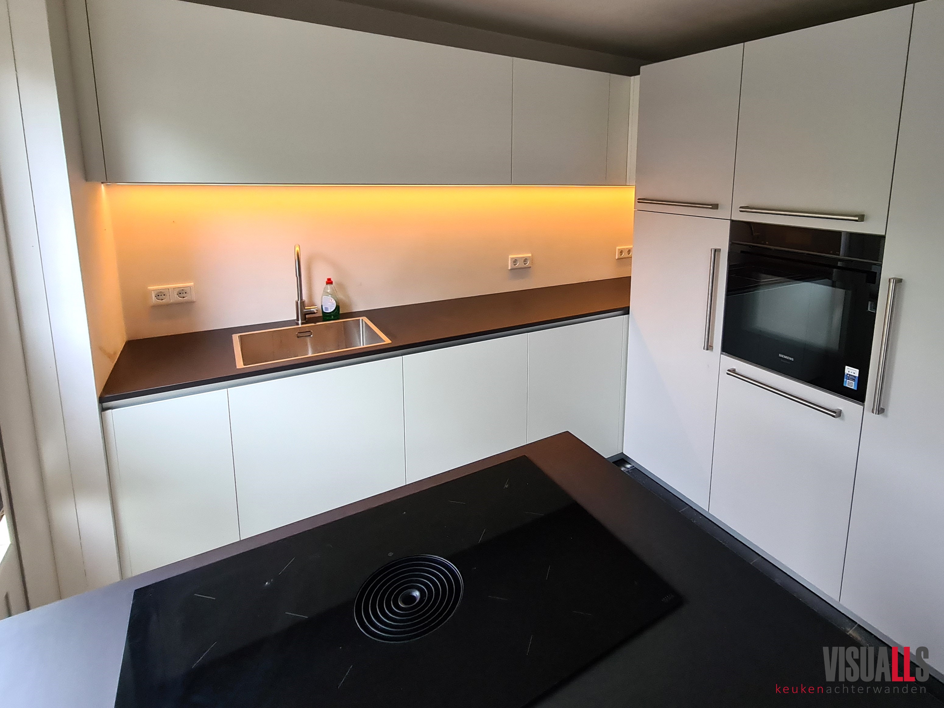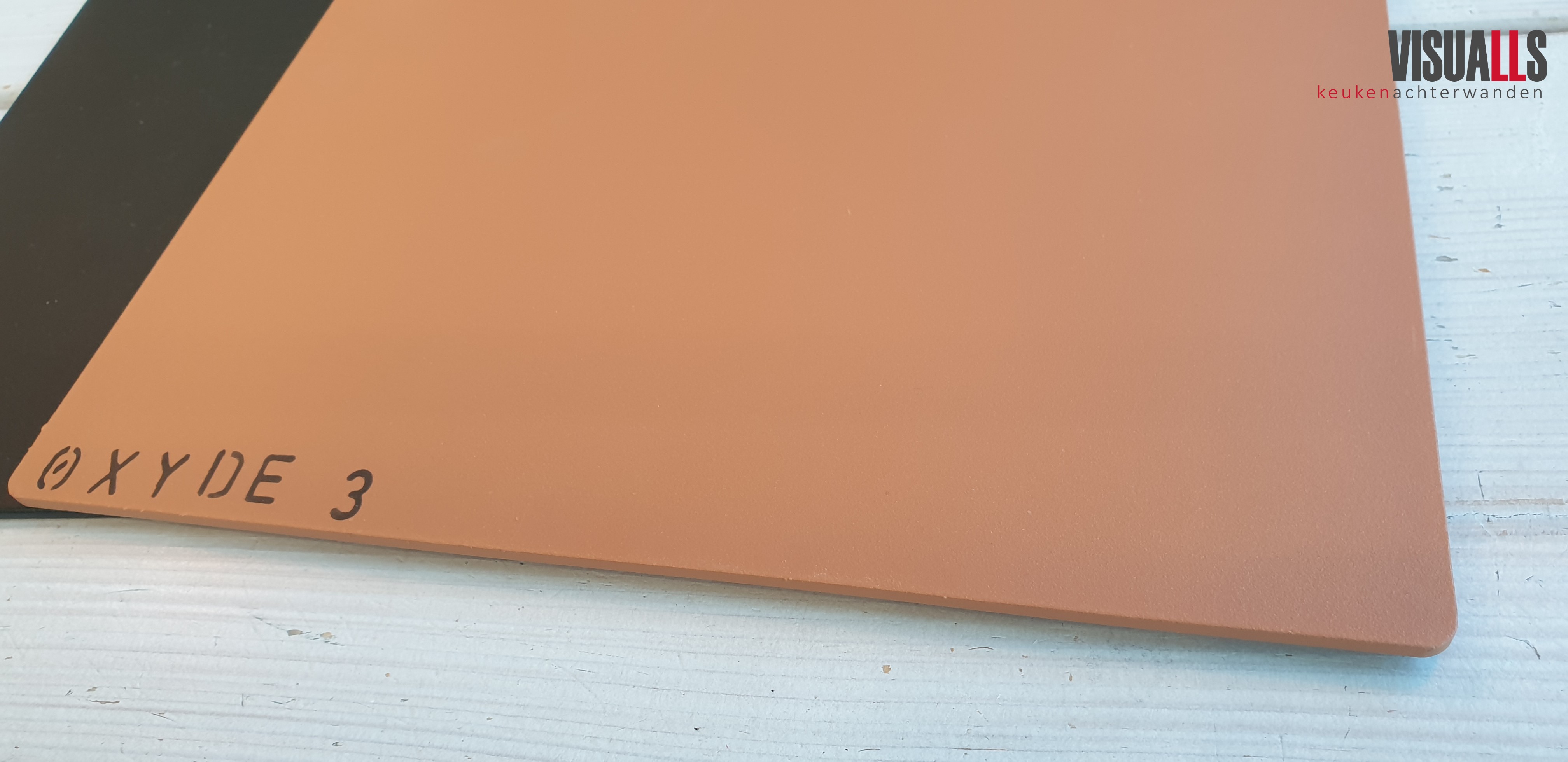 Luxe Collorz aluminium achterwanden (3mm dik) in matlak of zijdeglans afgewerkt met speciale coating.
