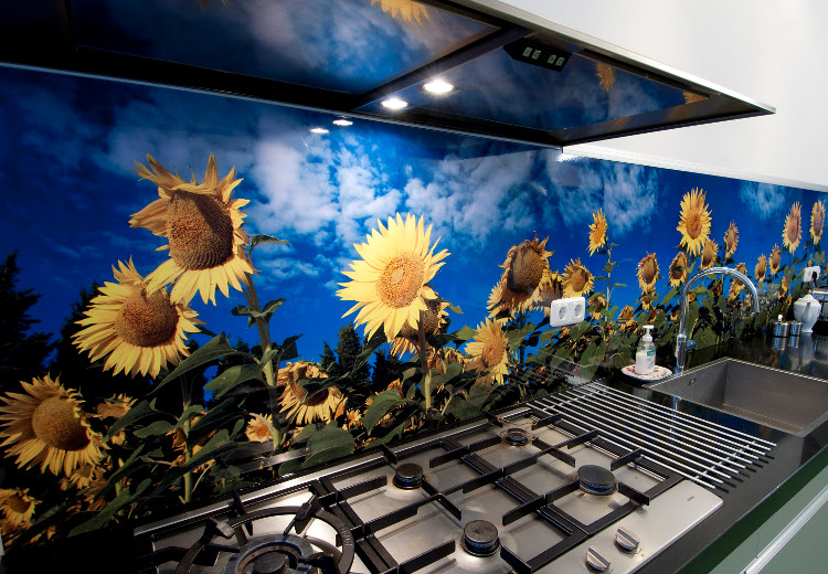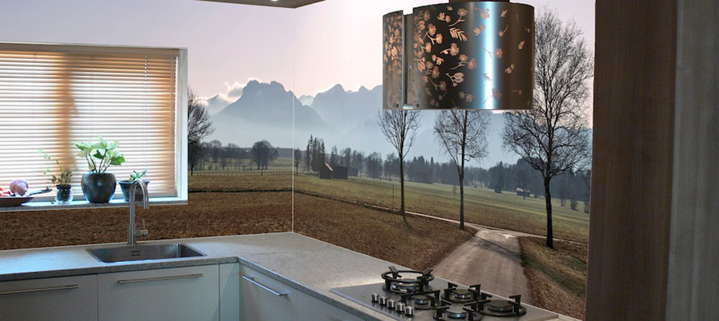 Dit zijn achterwanden die op basis van zelfklevende dikke papierbanen aan de voorkant gelamineerd zijn en waar een mooi dessin, afbeelding of foto staat. Dit type achterwand is redelijk water- en vuilafstotend en goed schoon te houden.