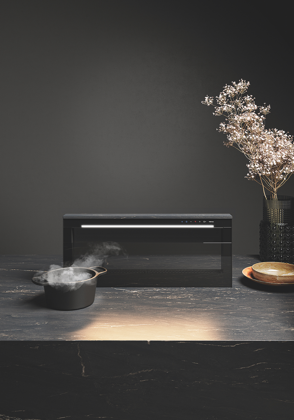 Falmec presenteert Circle Tech: een unieke serie afzuigkappen voorzien van een revolutionair recirculatie systeem. Kooklucht filtering geïntegreerd in deze design producten. Dit zorgt voor maximale efficiëntie, terwijl er geen afbreuk wordt gedaan aan de ruimte in de keuken. Door deze producten loopt Falmec voorop bij de ontwikkeling van deze revolutionaire lucht zuiverings technologie.