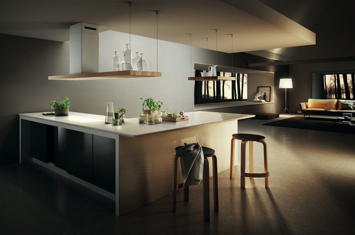 De Bio in de eilanduitvoering: deze afzuigkap is zowel modern als traditioneel in haar uiterlijk. Met de vele technische snufjes, zoals de Tune-White LED-verlichting, die van warm geel naar wit licht ingesteld kan worden, zorgt de Bio eiland afzuigkap voor de perfecte sfeer in de keuken.
