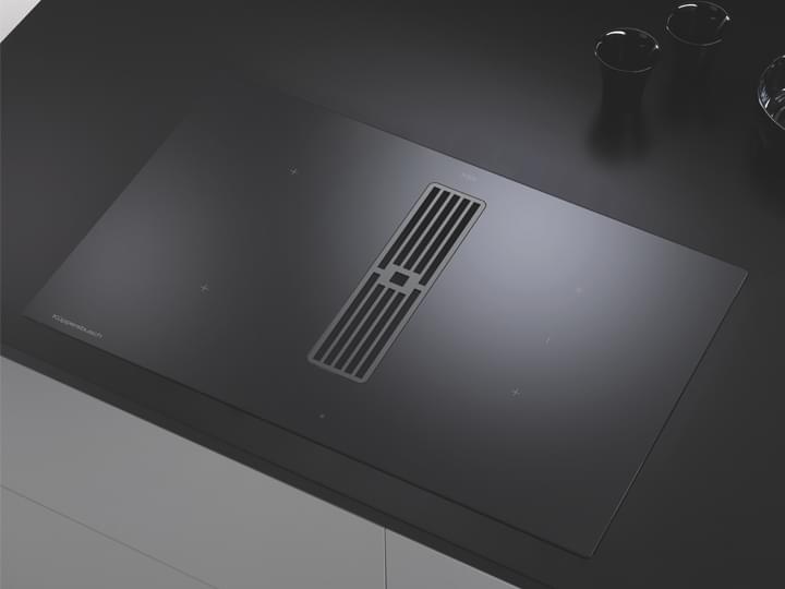 Het nieuwe inductie afzuigsysteem van Küppersbusch is uitgevoerd in een bescheiden design.