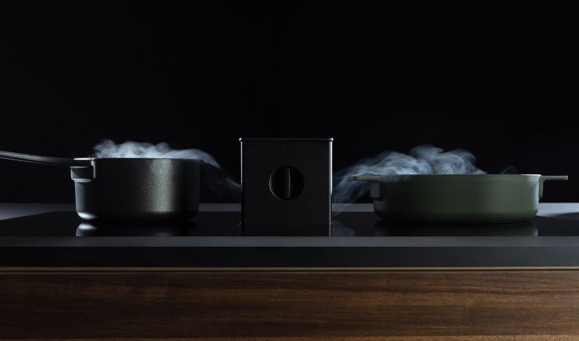 One Pro en One Power zijn beide een afzuigkap-en-kookplaat-in-één. De afzuigtoren verschijnt pas wanneer je effectief begint te koken. Dat is visueel aangenaam, maar de positie maakt van One ook een erg efficiënt afzuigsysteem. De toren zit namelijk in het midden van de kookplaat. Dichter bij de bron dus, en bovendien op dezelfde hoogte als de pannen. Zo worden de dampen direct weggezogen, nog voor er onaangename geuren kunnen ontstaan. Een discrete kantelklep maakt het bovendien mogelijk om het systeem nog gerichter te laten werken.