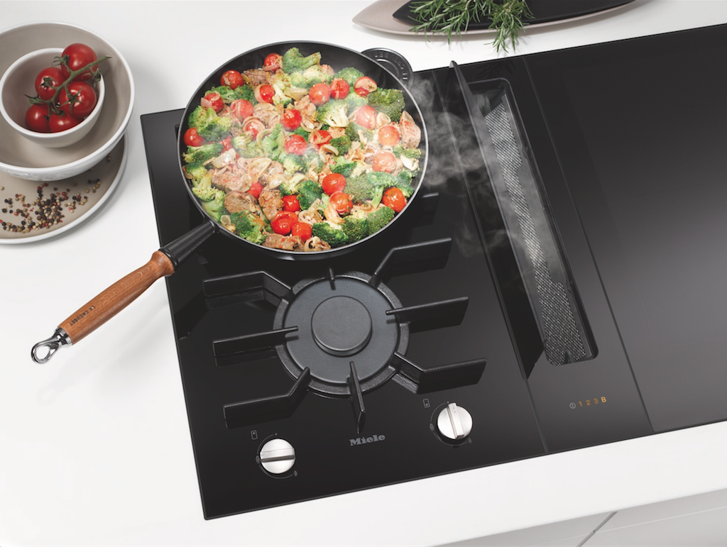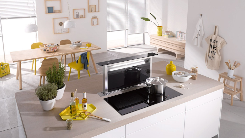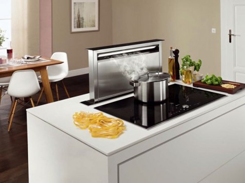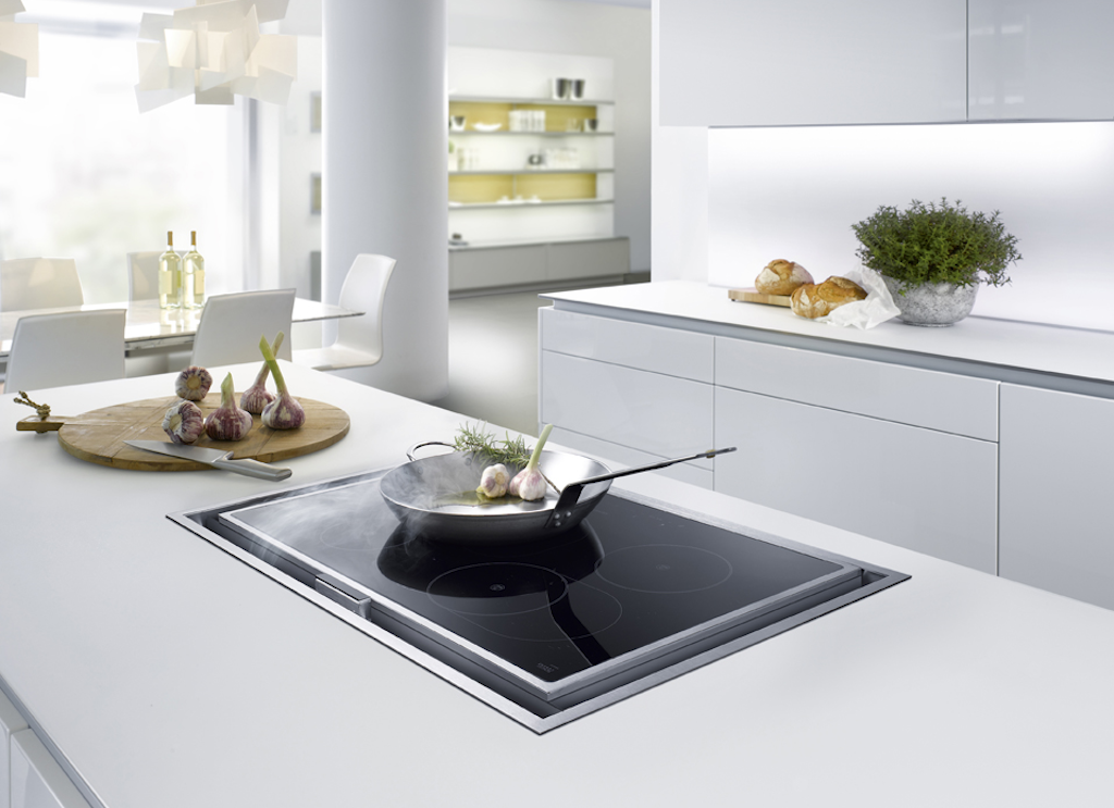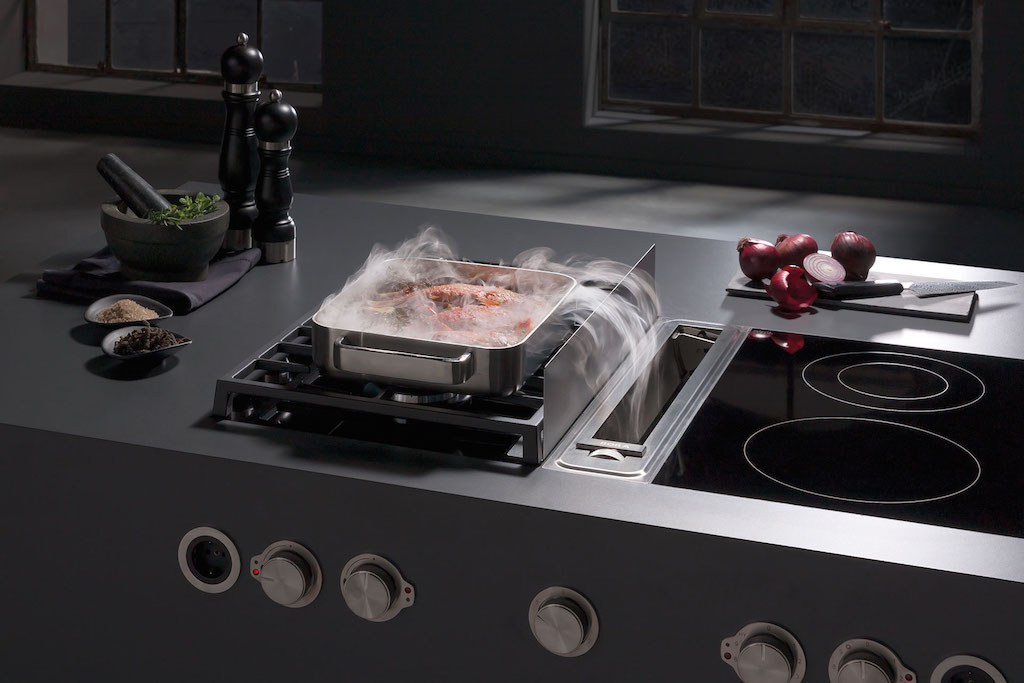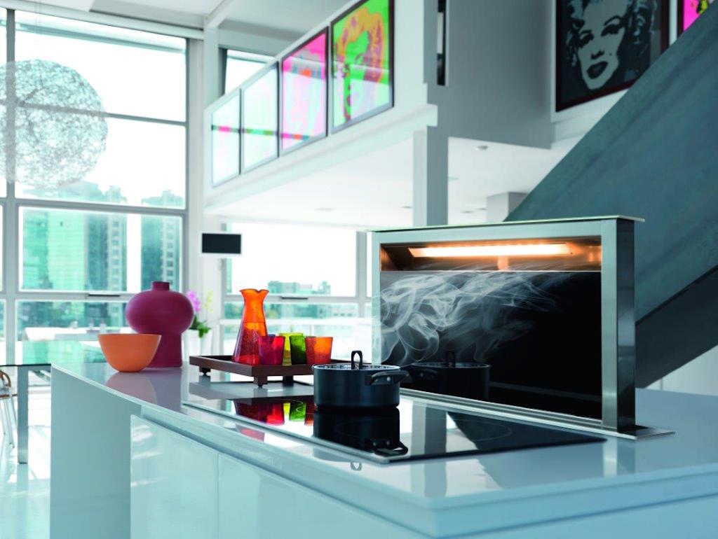 We kunnen ons ook voorstellen dat sommigen toch liever geen opvallende afzuigkap willen. In een keuken met een lage opstelling bijvoorbeeld, kan het mooier zijn om te kiezen voor een ingebouwd afzuigsysteem. Eén van de allernieuwste snufjes is downdraft werkbladafzuiging. Doordat deze systemen geïntegreerd worden in je werkblad, nemen ze nagenoeg geen ruimte in en zijn ze alleen zichtbaar als je ze gebruikt.
